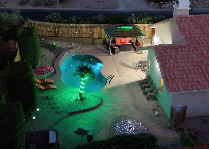 Situada a una distancia de 2 km de Hot Springs Park, Desert Hot Springs Vacation Home ofrece acceso a una piscina. Con vistas a las montañas, la villa está situada a un par de minutos en coche de Blind Canyon.